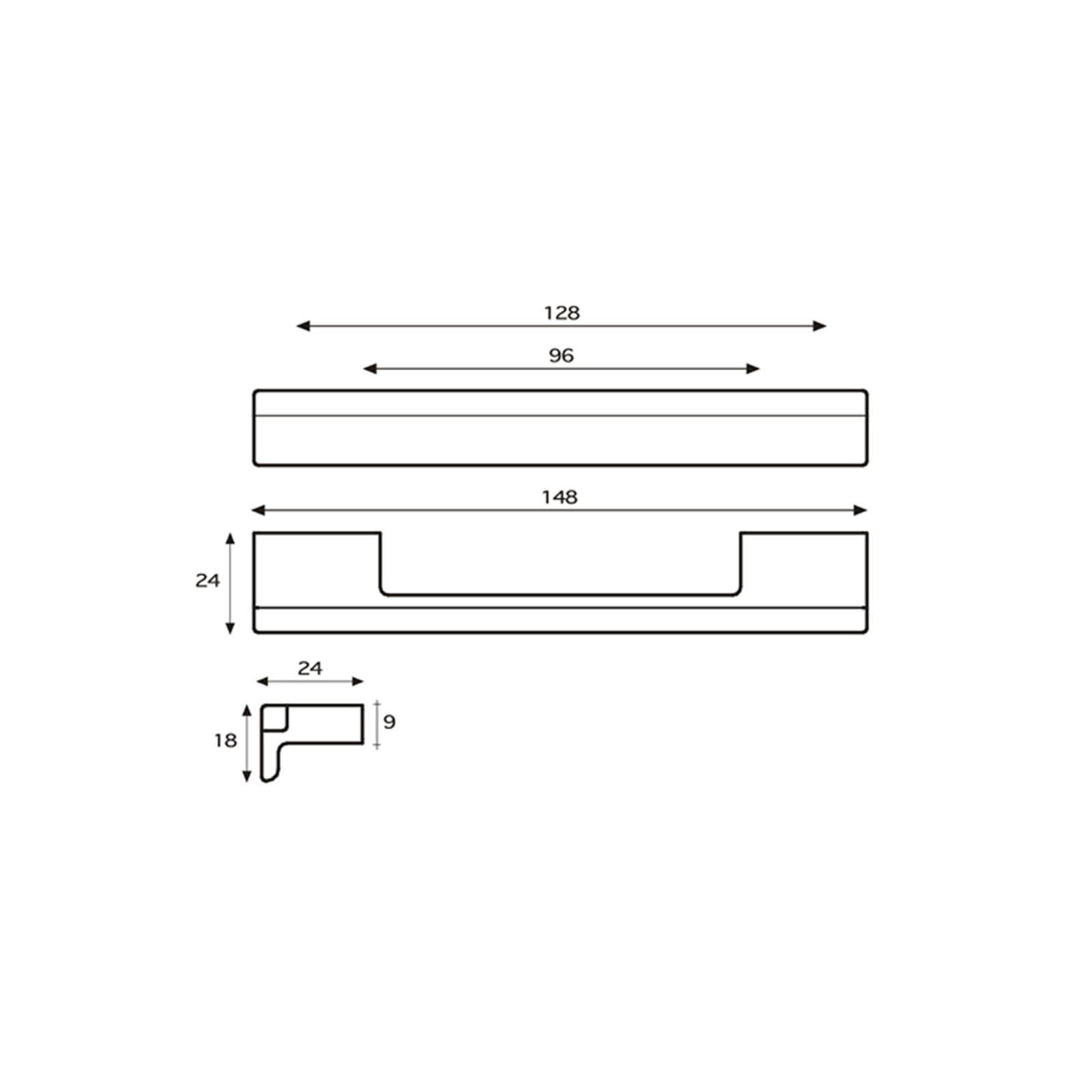34 mm, 148 mm, 170 mm